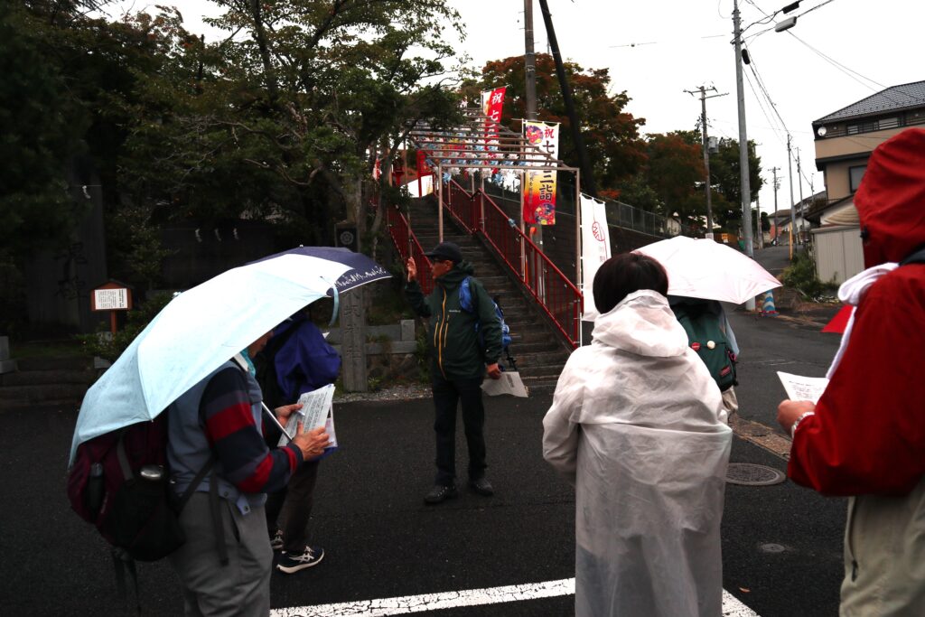 青少年の森を出発し、岩切城跡、東光寺、八坂神社をめぐり、後半は中世の道・奥大道を歩いて戻りました。