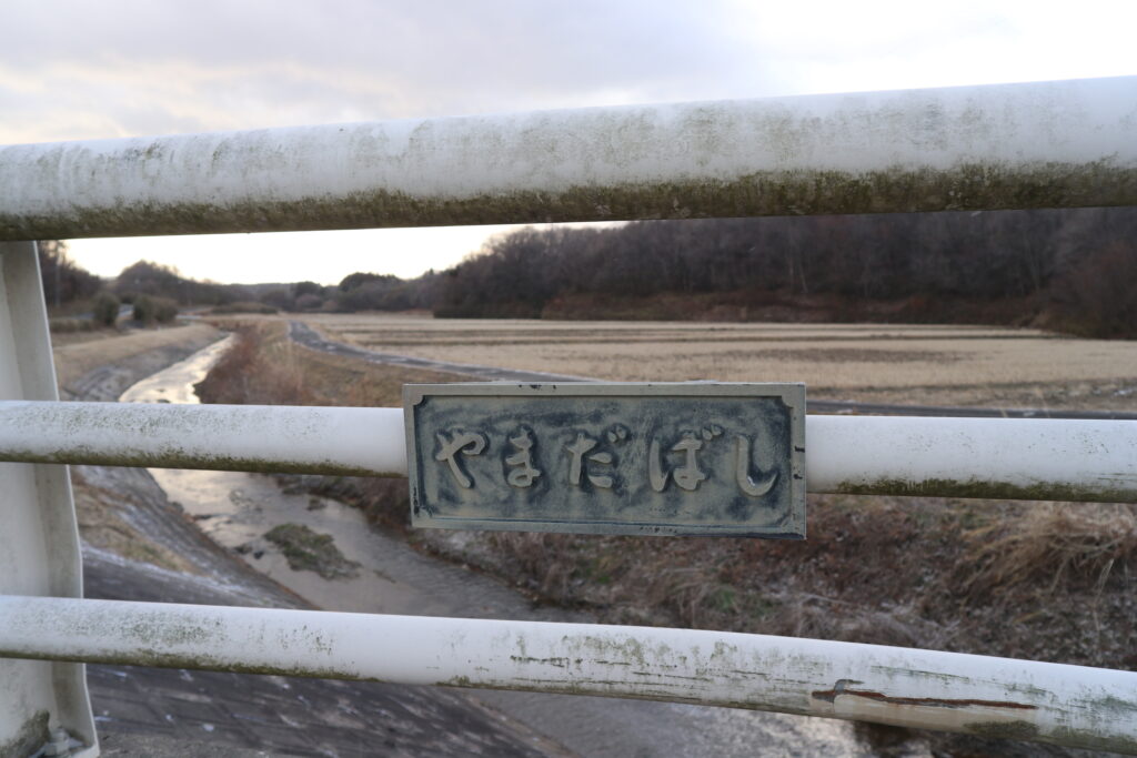 歩いていくと、小西川に架かる山田橋に出ます。僕たちは橋を渡らず、川の土手を歩いて天満宮を目指しました。車が通らないので安心ですが、風はさえぎるものがないので、きつすぎました。