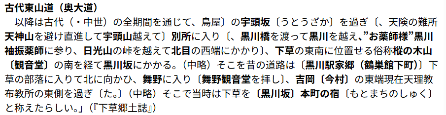 あとで分かったことですが、この古墳に訪れる際に通る山道が、東山道それ自体だった可能性もあります。InterBook七つ森紙背人・澤田諭氏のサイトには、2018年11月に大和町鶴巣地域振興協議会が開催した歴史講座『「鶴巣<黒川郡の古街道(フルケド)と「幻の勿来関」』の内容を抜粋・増補した記事が書かれています。小見出し「古代東山道(奥大道)」には次のように書かれていました。スクショで紹介します。