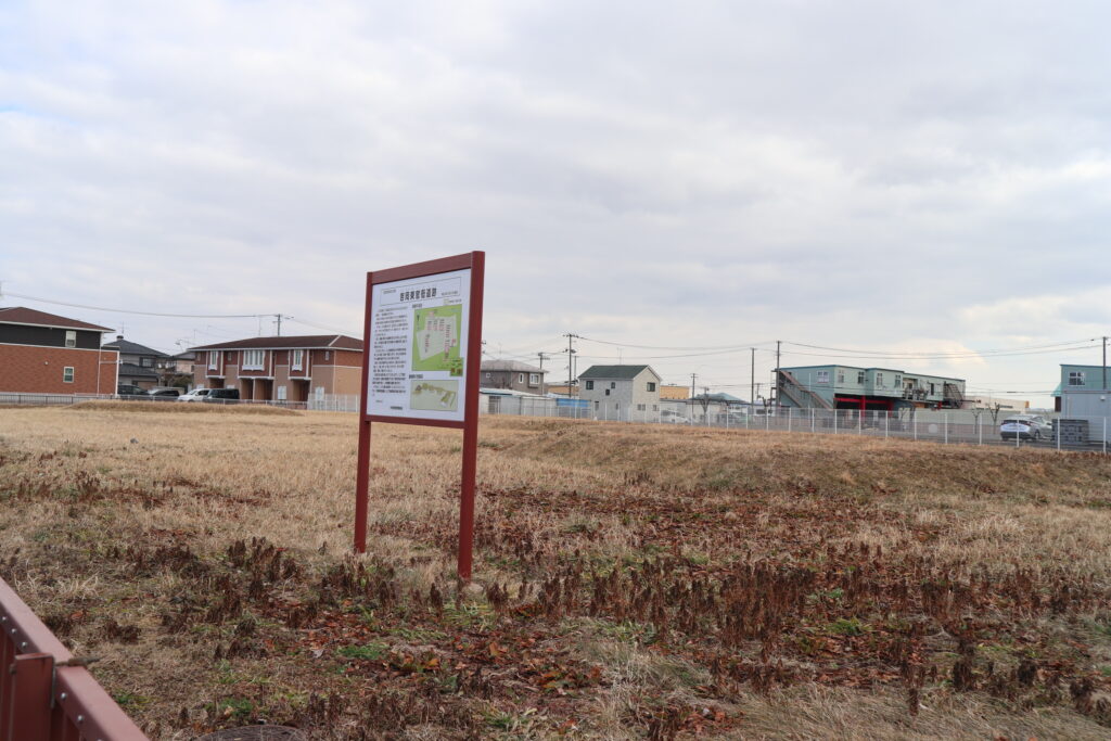 暴れ川の吉野川を渡り、最後に吉岡東官衙遺跡へと向かいました。今は工場や民家が林立しかつての面影など一切ありませんが、一角だけ空き地となっているところがぽつんとあり、そこが「吉岡東官衙遺跡公園」になっていました。遊具などはなく、歴史を伝える場所として設置しているようでした。公園内には、規則正しく盛り土されたところがいくつかあり、かつての建物があった場所を指し示しています。また、この遺跡は「一里塚遺跡」とも呼ばれており、近くには一里塚公園という公園もありました。